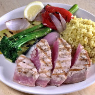 “ We recently discovered a gem of a restaurant in our own neighborhood! The menu features a diverse selection of seafood dishes, including grilled fish plates, salads, classic seafood recipes, fish tacos, and wraps. There is also a kid's menu available. You can choose from over sixteen seafood options, such as salmon, swordfish, mahi-mahi, halibut, and giant prawns. These can be grilled over an open flame or fried, and are accompanied by a variety of spices, sauces, and sides like grilled fresh vegetables, zucchini, fries, or rice. A key point for me is that they also offer gluten-free options. Their sustainably sourced, wild-caught seafood is available at a very affordable price. The location features a friendly staff and a pleasant, clean atmosphere reminiscent of a waterfront restaurant in the Bay Area. The food is delicious, and the portion sizes are very satisfying. We sampled two menu options: the salmon tacos, featuring corn tortillas, cabbage, cilantro, tomato, red onion, and chipotle dressing, accompanied by black bean salsa and rice pilaf, and the grilled ahi tuna plate, served with french fries and coleslaw. Both dishes were delicious and satisfying, and you have the option to customize them to your liking. Additionally, they offer a nice selection of desserts and beverages. We will definitely be back! ”